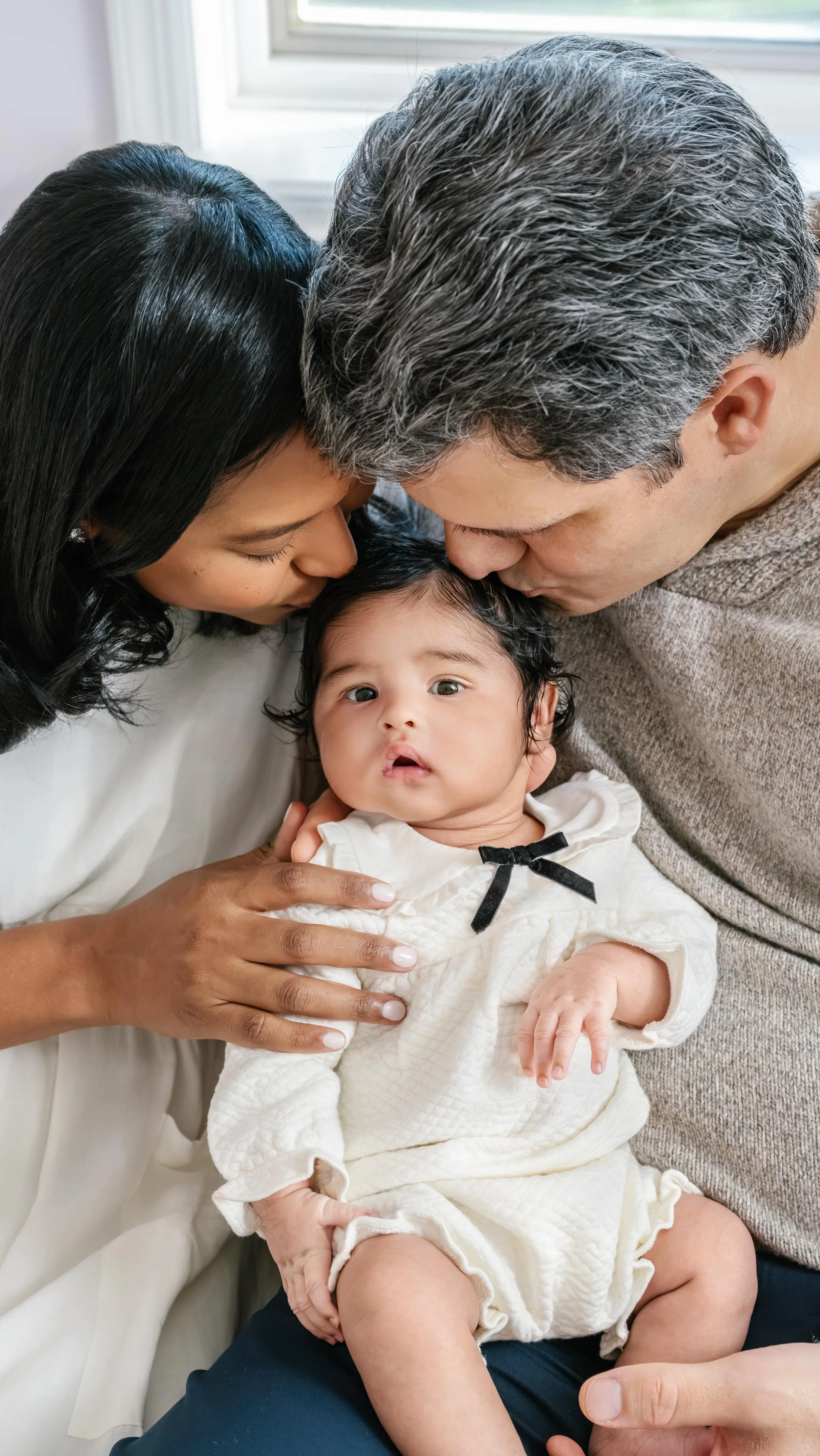 I always like to start by taking candids with my clients where I let the little ones play and get their energy and camera-shyness out. Once that's happened, I work towards some more traditional portraits. This provides parents with a variety of photographs to choose from with a mix of candid and posed images.