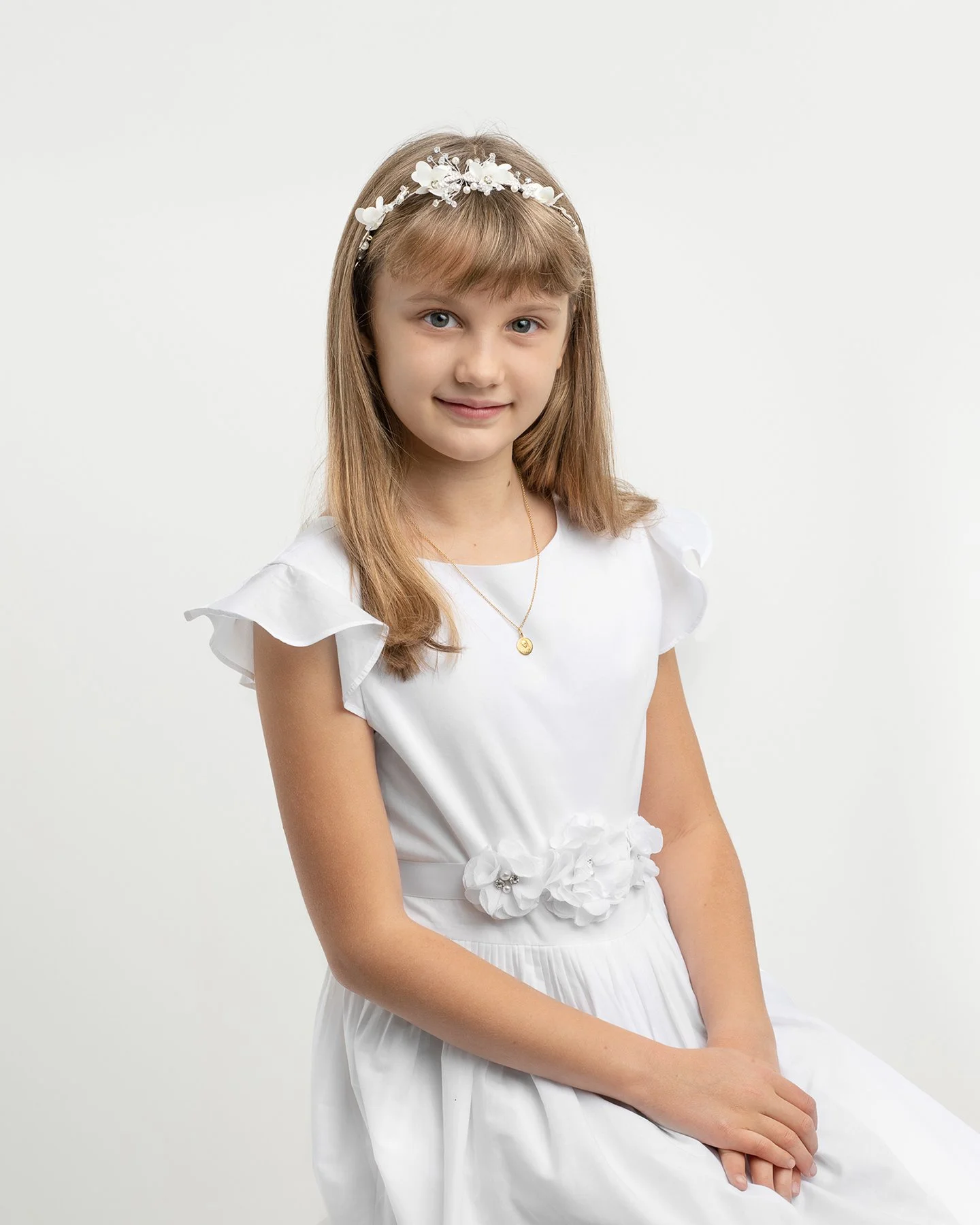Petite milestone sessions take place in our Maplewood studio Tuesday–Thursday at 10:30 AM or 1:30 PM.